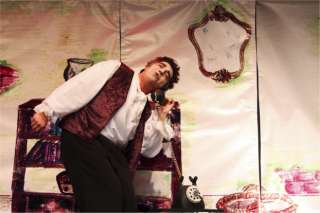 207.- Anacleto: (Volviendo del desmayo, busca su bolsa). Socorro, ¡al ladrón!. Me han robado mis millones... millones... Maldita magia, maldita magia (Se pega en la boca, y en la lengua). (Entran Juan y Pedro)